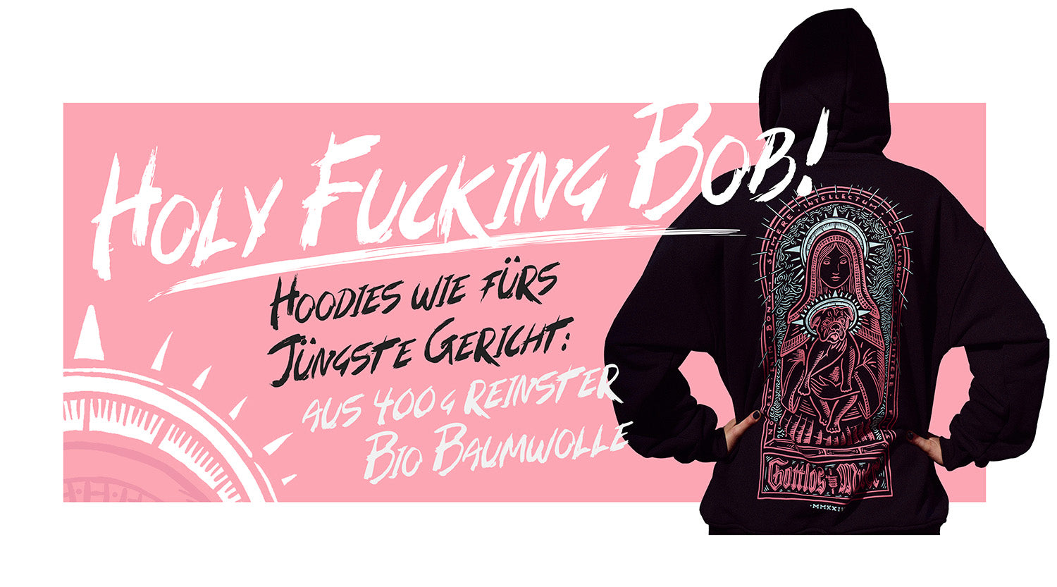 Grüß Bob! Willkommen in der möglicherweise gottlosesten Ecke des Internets. Zumindest wenn es nach deiner Mutter geht. Egal, schau dich um, schmeiß was in Bob’s Kollektenbeutel (kauf 1 oder 2 Socken